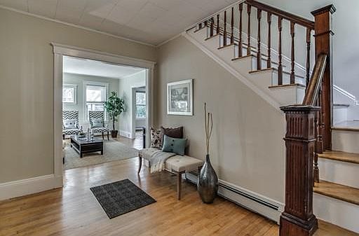 Excellent character-filled home in the very desirable Prospect Hill neighborhood. Wonderful front porch, spacious entryway, and a bright and sunny living room. Dining room with built in china cabinet opens to the eat in kitchen. First floor office space can potentially be converted to a half bath/laundry room. Four bedrooms upstairs, all with hardwood floors. Bonus space on the 3rd floor can be used for storage or as a fun little hangout space for kids. High ceilings provide a wonderful sense of space. Freshly painted throughout. Updates include newer gas furnace, Superstor hot water heater, and electrical panel. There is a great backyard with lots of room for play, gardening, and more. Enjoy this established neighborhood in Beverly that has a wonderful sense of community and is convenient to downtown Beverly's coffee shops, restaurants, & theaters.