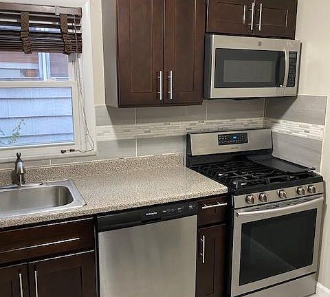 Recently renovated 1st floor apartment. The modern tiled kitchen features a gas stove, microwave and dishwasher. Hardwood floors throughout. Central heating and air conditioning. Includes a garage and driveway parking and free use of a washer and dryer. Nice grassed and fenced backyard. Located on a very nice block. If interested, call to set up a showing. 1 year lease available. Tenant responsible for their own gas and electric.