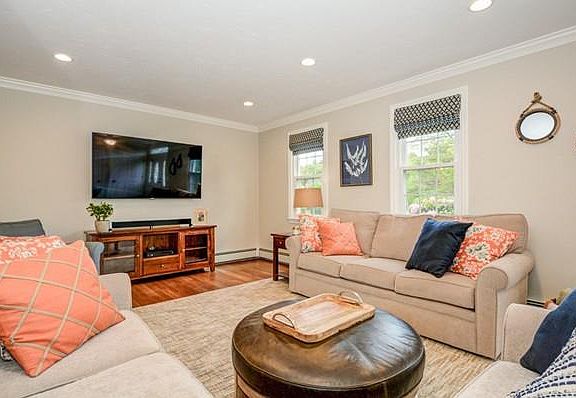 Just wait until you see this beautiful NEW listing in sought after Wrentham Village. Stunning newly remodeled (2016) 1st floor w/ gorgeous kitchen; granite, wine/beverage fridge, soft close cabinets, subway backsplash, SS Jenn Air appliances (all incl), huge ctr island, penisula & all new hrdwds thruought. Adjacent DR w/ bump out bay, wainscoting, & slider out to covered composite deck overlooking colorful gardens & koi pond. Updated 1/2 bath next to built in cabinets/mudroom area. Cozy FR w/ gas FP surrounded by granite & custom made hearth. Lrg front facing LR w/ crown molding. Mstr bdrm w/ private full bath, dbl closets & office to the side. 2 addl bdrms, laundry & full bath on 2nd floor. 3rd flr has 2 large bdrms & loft area perfect for play or exercise. Don't forget that it's situated on a lovely professionally landscaped 2 acre lot w/ irrigation & gorgeous heated Gunite salt water pool & hot tub. This one is a show stopper....don't miss out!