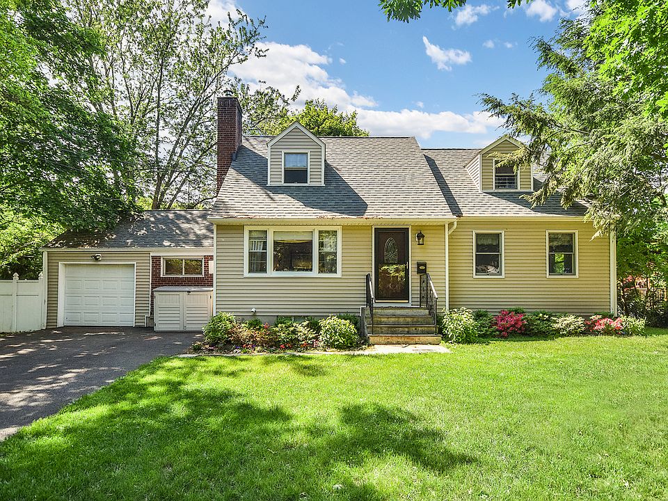 Adorable and updated Cape close to all! Large living room with fireplace, updated eat-in-kitchen with stainless steel appliances and granite counter tops, four bedrooms and two updated baths make this home a great value. Flat and private fenced in yard with new patio. Move right in! Updates include: fully renovated bathrooms, new roof, new siding, hot water heater, six panel doors, crown molding and hardwood floors throughout. Private, flat fenced-in backyard complete with new patio. Walk to parks, schools, town and train!