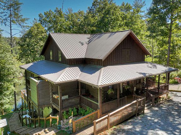Gorgeous custom Satterwhite log home on the Coosawattee River. Entry foyer leads to a two story great room with floor to ceiling wall of glass, stack stone fireplace, overlooking the river. Gourmet chef's kitchen with a huge center island, 2 beverage coolers, walk-in pantry and S/S appliances. Main level mstr with it's private screened porch. Master bath with leather-ed granite counters, oversized shower and closet plus and outdoor shower! 2 bedrooms up with a Jack n Jill bath with leather-ed granite and walk in shower. Terrance level with a lrg bonus room, wet bar with granite counters and cooler plus a walk in wine cellar. 2 additional bedrooms and bath. Recently expanded outdoor deck overlooking the river with a hot tub and gas fire pit. Whole house generator, on demand hot water and barn doors throughout. Don't miss this one!