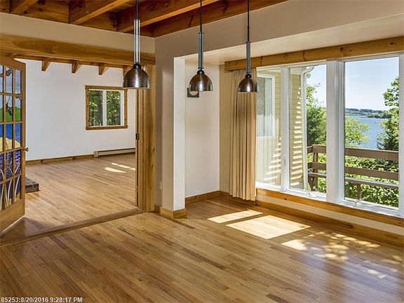 Located at the head of Atkins Bay overlooking Fort Popham sits a modern Cape with multiple decks, balconies and windows allowing the property owner many points of view of the natural park like setting surrounding you. Just off the garden sitting area, stairs lead to a platform at waters edge for water skiing, kayaking, etc. Short walk to common dock area and would house a larger boat! Plenty of open spaces with light galore inside, including an enormous 3 season porch & open kitchen/dining/living areas.