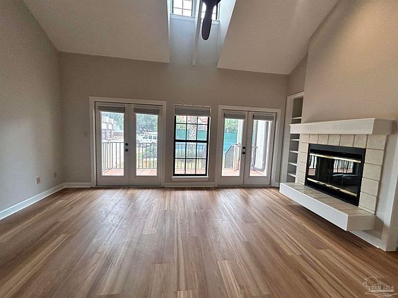 Discover this move-in ready 1BR/1.5BA loft-style condo with breathtaking views of Pensacola Bay, located in the highly desirable gated Baybridge community. The one-story layout offers a freshly painted interior, soaring cathedral ceilings, and an open, spacious design. All appliances—including washer and dryer—are included for your convenience. The main floor features a half bath and laundry area, while the upstairs loft serves as the master suite with a full bath, double vanities, three closets, and a private deck overlooking the bay. Unlike some units, this home boasts full-size stairs to the second floor instead of a spiral staircase. Enjoy stunning bay views from both the loft bedroom and the back patio—perfect for relaxing and soaking in the coastal scenery. The HOA takes care of lawn maintenance, making this a low-maintenance lifestyle. Community amenities include a bayfront pool, tennis courts, a private white sandy beach, waterfront boardwalk, and a dock with boat slips available for purchase.Some construction and community improvements are still being completed. The driveway will be finished after these updates, and a gate will be installed to limit access for added security. Ideally located just 3.6 miles from Pensacola Beach and 5.4 miles from Downtown Pensacola, with Publix, restaurants, and shopping only a short walk away. The seller has already paid the ROM repair/replacement assessment in full. Please note: short-term rentals such as Airbnb or VRBO are not permitted. This property is perfect as a primary residence or a vacation retreat, offering the ultimate blend of coastal living and boating access in one of Gulf Breeze’s most sought-after neighborhoods. Some photos are AI-generated to show potential.