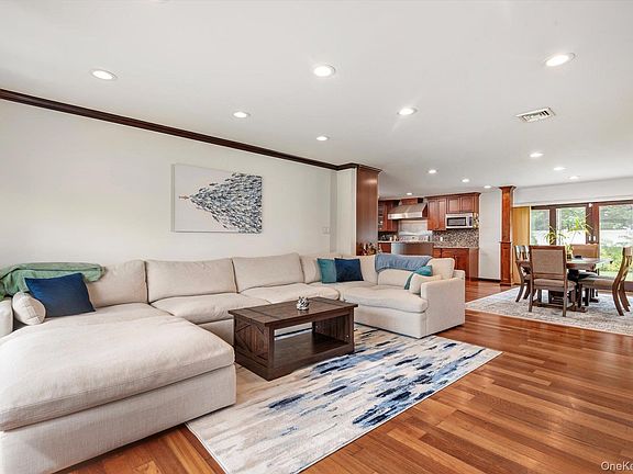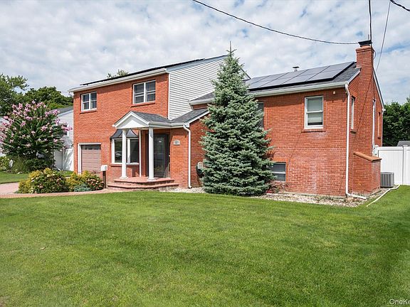 Welcome to 40 Bayview Place, located in the heart of Massapequa. This expanded split-level home offers over 2,100 square feet of living space along with private beach rights to Dolphin Beach. The main level features an open-concept layout with a spacious living room, dining area, and a large eat-in kitchen with a center island, sub-zero refrigerator, and wine fridge, perfect for entertaining. Upstairs, you’ll find a primary suite with soaring ceilings, a walk-in closet, and a full ensuite bath complete with a jacuzzi tub and walk-in shower. Three additional generously sized bedrooms and a second updated full bath complete the upper level. The lower level includes a cozy den with a wood-burning fireplace, a third full bath, laundry and utility room, and direct walkout access to the backyard. Outside, enjoy a private PVC-fenced yard with a paver patio and plenty of sunlight, ideal for relaxing or hosting gatherings. Additional highlights include a new roof with solar panels, gas heat and cooking, hardwood floors throughout, updated 200-amp electric with EV charger, in-ground sprinklers, and central air conditioning. Call for your private tour of this beautiful home!