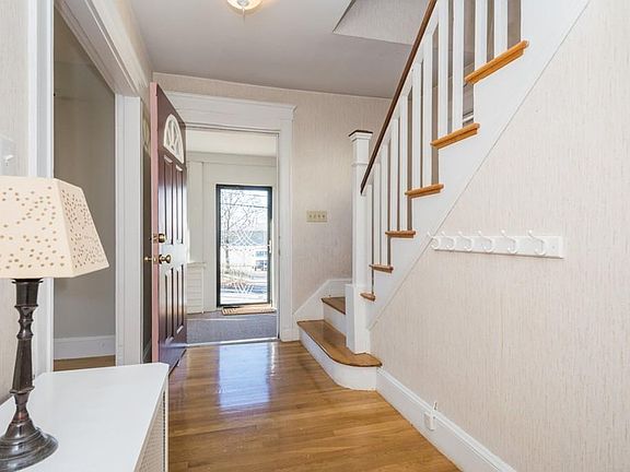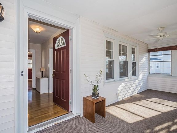 Welcome home! Move right in to this stunning Colonial just steps to shops, restaurants and commuter rail! Upon entry you are greeted with 3 season porch, hardwood floors, soaring ceilings and loads of charm. Large living room with a ribbon of windows flow into sun filled dining room boasting original built-in. First floor is rounded out with generously sized eat-in kitchen opening to deck, expanding your living space. Upstairs has three bedrooms and a full bathroom. Additional storage in basement with laundry. Central air, fenced in back yard and 2 car garage complete this property. Easy commute to Boston close to Route 3 and Red Line!