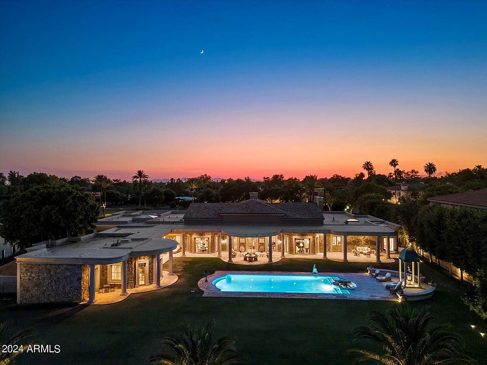 Record-Breaking VALUE Here at the prestigious Biltmore Resort; the Estates within the circle are majestic. This setting is exceptional on the golf course at 1.3 acres of breathtaking views of Camelback Mountain backdrop. A grand motor court welcomes you to a stately foyer, leading to expansive living and dining areas that epitomize opulence. The kitchen is a culinary marvel, boasting generous pantries and an extensive laundry suite. The private master suite offers a serene retreat, while additional rooms include a sophisticated office, an elegant library, and a refined bar room. Descend to the lower level to discover a magnificent paneled game room, an impressive wine cellar accommodating thousands of bottles, a chic bar, and a luxurious theater room. The verdant backyard, overlooking the golf course, features an outdoor kitchen perfect for alfresco dining and a charming two-bedroom guest house. This estate exemplifies exceptional craftsmanship, architectural brilliance, and an unrivaled location, making it a true masterpiece of luxury living.