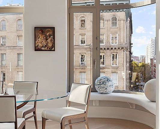 Designed by the visionary Rawlings Architects with interiors by Ryan Korban, 40 Bleecker embodies refined downtown sophistication. Korban’s signature aesthetic: rich materials, graceful lines, and a muted yet luxurious palette which creates an atmosphere of quiet glamour. Inside the residence, Listone Giordano wide-plank chevron-patterned French oak floors, custom millwork, and elegant marble finishes complement an open-plan layout perfectly suited for both everyday living and grand entertaining.