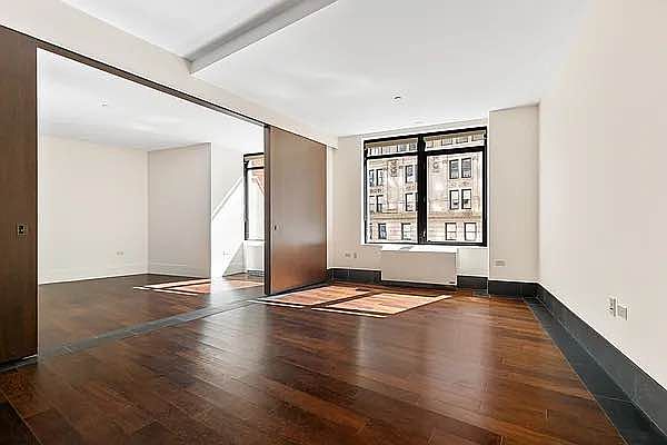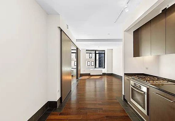 This residence features 11' ceilings, stunning Brazilian walnut floors, oversized windows, and excellent proportions. The living room gets excellent natural light and provides ample room for sitting and a dining area. The modern, chef's kitchen is open to the living space and features black granite countertops, custom walnut cabinets, Miele full size gas range and oven, Sub-Zero refrigerator, and dishwasher. There is also Bosch WASHER/DRYER in the apartment.