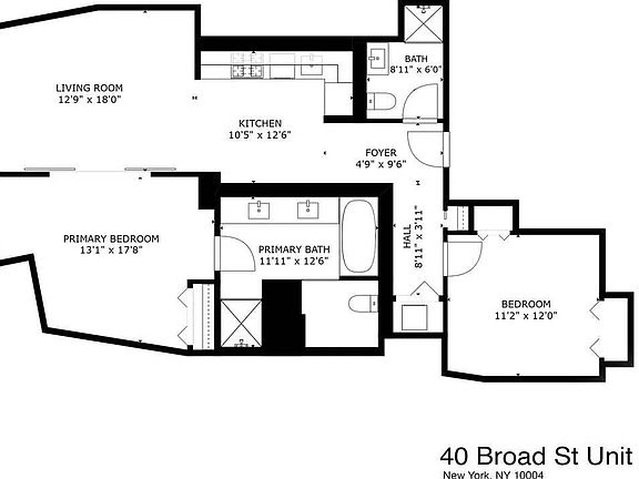 Welcome to 40 Broad Street! This is an incredible, mint-condition 1-bedroom 2 full bathrooms + spacious home office that could be used as a functional queen size bedroom!