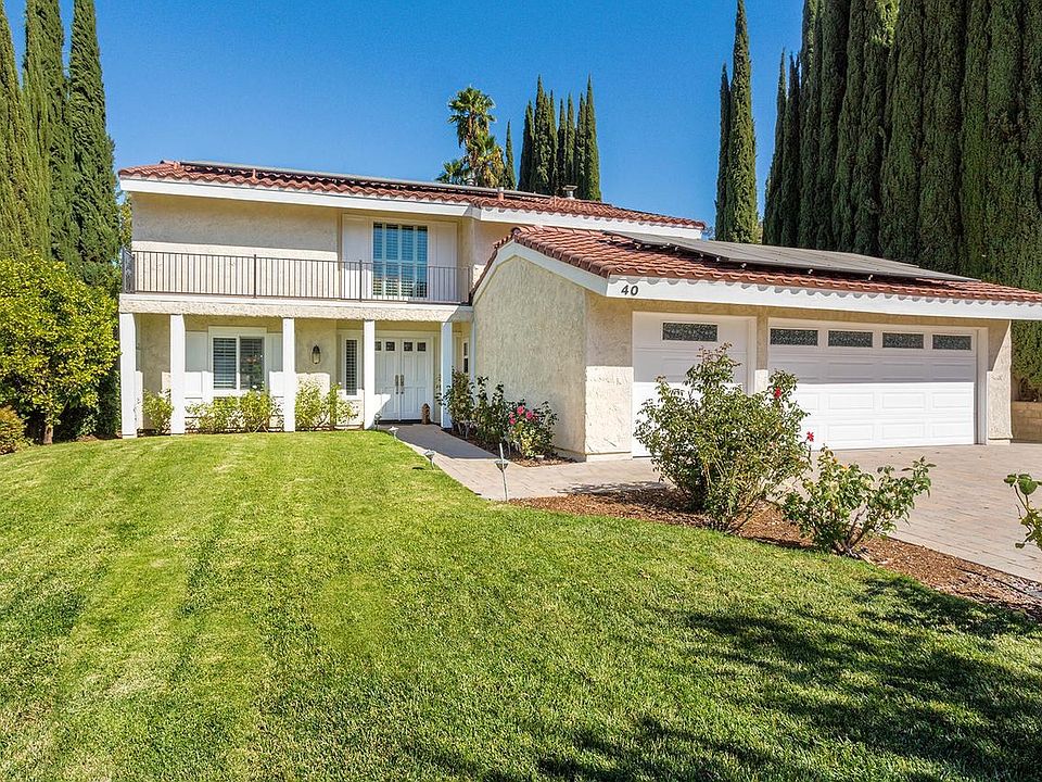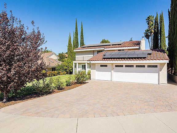 Situated in a quiet cul-de-sac, this traditional style home offers excellent space for living, relaxing and entertaining. Pull up to a spacious driveway with a 3 car garage, lush landscaping, beautiful stonework and a charming path leading to the double door entry. Once inside the foyer you will see a grand staircase leading up to 4 bedrooms and 2 full bathrooms. The master suite has a huge walk-in closet and exquisitely updated master bathroom. On the main floor you will find a guest room (currently set up as a gym) with a connected bathroom and a private courtyard. Plenty of space for entertaining with a formal living room & dining room. The family room is adjacent to the kitchen and has a cozy fireplace, custom built-in bar and sliding glass doors leading outside. Gourmet kitchen offers a huge pantry, matching roll-away island, granite counter tops, updated cabinets and stainless steel appliances. Venture out to the backyard and take a dip in the pristine pool with spa, grill out on the patio or just enjoy the private yard. **The solar system for electricity and pool heating is owned and the HVAC system has been recently updated**Fabulous location conveniently located near the Oaks Mall with easy access to parks, hiking trails and the freeway.