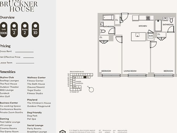 - Exterior features: , Bicycle storage, Broker Exclusive, Childrens Playroom, Courtyard, Garden, Live In Super, Media Room, Nyc Evacuation 4, Package Receiving, Parking, Recreation Facilities, Roof Rights, Roofdeck, View Type: Garden View, View Type: Skyline View, Waterview
