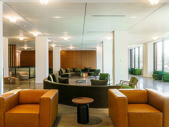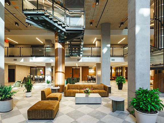 Immerse yourself in the inviting warmth of the materials used across all amenity spaces. The quartered glass floods each space with natural light, bouncing off the rich wood paneling, rendering The Bruckner House's community spaces the ultimate hub for work and entertainment.