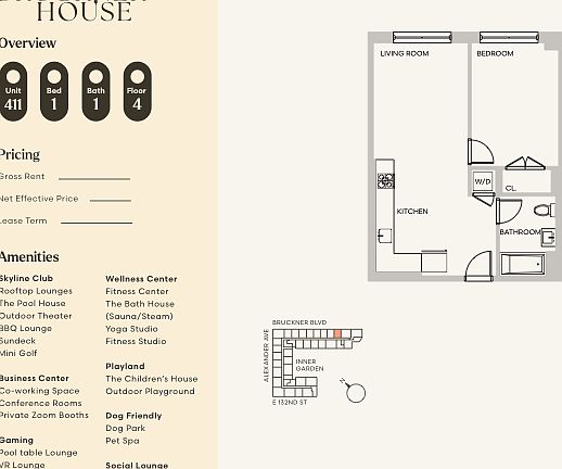 One Bedroom homes at Bruckner House feature high-end finishes, modern appliances, comfortable and well-designed spaces, and large closets. Expansive windows invite an abundance of natural light, brightening every corner and creating a warm, welcoming atmosphere throughout the day.