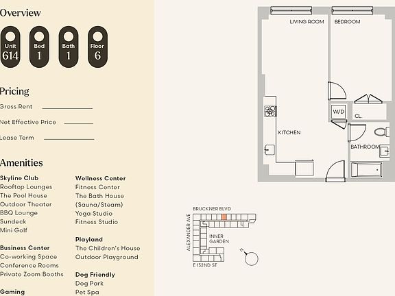 One Bedroom homes at Bruckner House feature high-end finishes, modern appliances, comfortable and well-designed spaces, and large closets. Expansive windows invite an abundance of natural light, brightening every corner and creating a warm, welcoming atmosphere throughout the day.