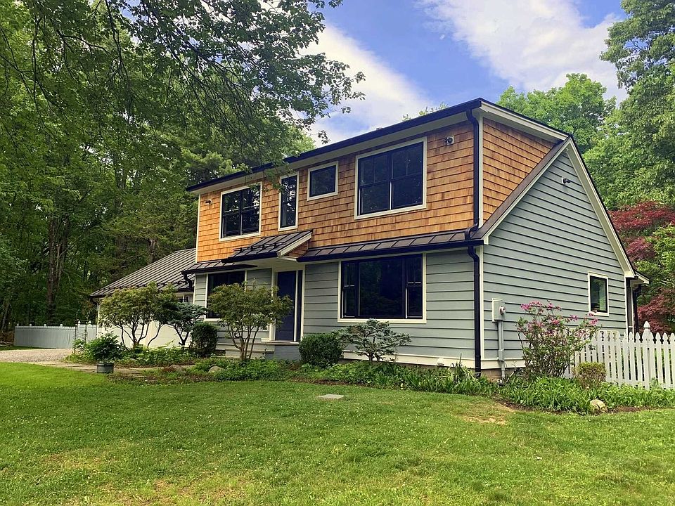 Move right in! This is a top to bottom renovation and reinvention of a fabulous country home, minutes to the village of Stone Ridge and privately sited on 2.8 acres with lawn, woods and bordered by a stream. The park like parcel (with room for a pool!) allows you to spread your wings and enjoy the established landscaping while leaving plenty of room to develop your own horticultural style. Inviting first floor open layout with living room featuring a propane fireplace with a unique mushroom wood mantle. The dining room is so spacious that it easily accommodates large dinner parties. Cook's kitchen with GE stainless steel appliances and hood, a Sharp microwave drawer, white quartz counters and island, porcelain farm sink and modern cabinetry. The newly established screened porch leads to an open deck and bluestone patio overlooking the great lawn and mature trees. Two large and bright ensuite bedrooms featuring bathrooms with walk-in showers on second floor, and a third bedroom with dedicated full bath on the main level. All three bathrooms are beautifully tiled and come with radiant heat floors. Bright, newly installed wide-board wood floors throughout the rest of the house. Fujitsu ductless mini split systems provide for efficient heating and cooling. Attractive metal roof, spray foam insulation, new drywall, trim, all new windows and doors, completely rewired and upgraded electric, new water heater. Garage was doubled in size for two cars and projects. This home is like new and available for showings as soon as the wood floors are dry!