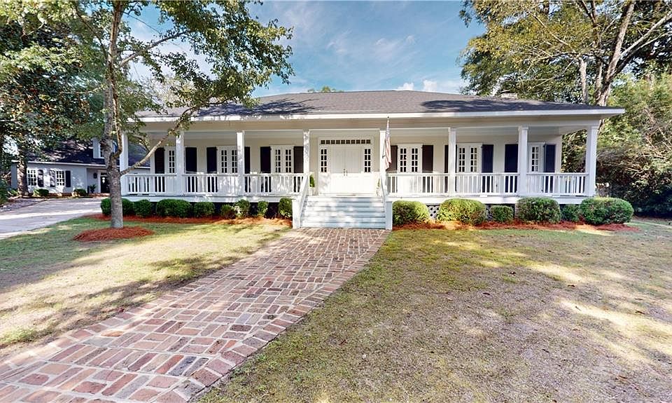 Exceptional Spring Hill Estate with Guest House and Pool on One Parcel! Nestled privately at the end of Buerger Road, this property features two residences—each filled with charm, character, and thoughtful design. The primary home, built in 1994, offers 3,249 square feet per appraisal and features 3 bedrooms and 3 baths. Built on piers, the home showcases tall ceilings, Brazilian hardwood floors, and stunning architectural elements. A sweeping front porch lined with French doors welcomes you inside to a gracious foyer with a view through the home. The foyer is flanked by a lovely dining room and opens into an inviting open-concept kitchen and keeping room. The kitchen includes a large island with breakfast bar seating, gas cooktop, double stainless sink, tumbled stone backsplash, and granite counters with marble-like veining, as well as a peninsula for extra space. A laundry room and pantry with split brick floors add charm and convenience. A sunny enclosed glass porch across the back of the home provides the perfect spot to relax or entertain. The den features a fireplace with gas starter and built-in bookshelves, creating a warm and welcoming space. Each bedroom in the main house offers its own ensuite bath. One guest bedroom is located off the kitchen, another off the main hall, and the primary suite sits privately at the back of the house—a serene retreat color-washed in blue—featuring a fireplace, a spacious bath with separate shower, soaking tub, and dual walk-in closets. A separate office or nursery sits adjacent to the primary suite. The guest house, built in 2016, is equally impressive. With a Federal-style design and concrete board exterior, it offers 10-foot ceilings, heart pine floors, and a gas log fireplace. Built on a slab foundation, the home is as solid as it is charming. Sunlight pours through the large picture window, creating a welcoming atmosphere. The kitchen, open to the dining area, features white cabinetry, stainless appliances, and a 200-year-old cypress-topped island. The first-floor primary bedroom includes an ensuite bath and walk-in closet, while upstairs you’ll find a spacious second bedroom with carpet, an ensuite bath, and two attic spaces for generous storage. Outdoors, the property offers ample parking, a single carport, fenced back yard, storage room, gunite pool, and pool cabana with bath. Brick pathways, a pretty fountain, and mature landscaping—including lovely estate camellias—complete the picture of this truly special Spring Hill retreat. A rare opportunity to own two beautiful homes on one parcel in a fantastic Spring Hill location, offering timeless Southern charm and exceptional design.