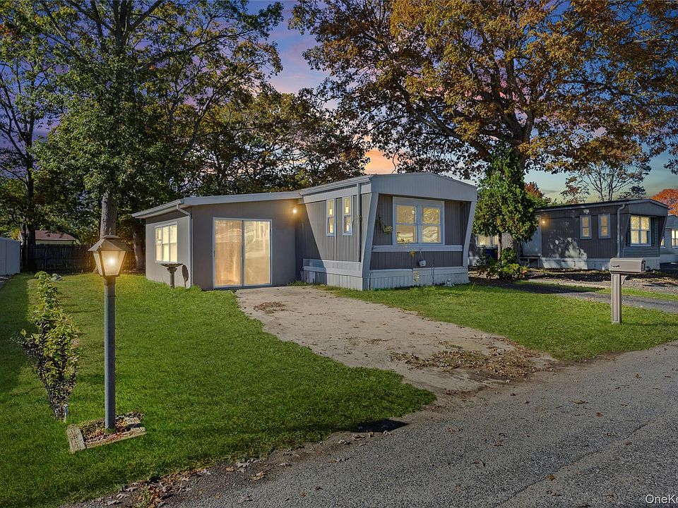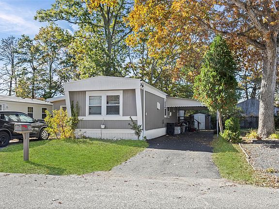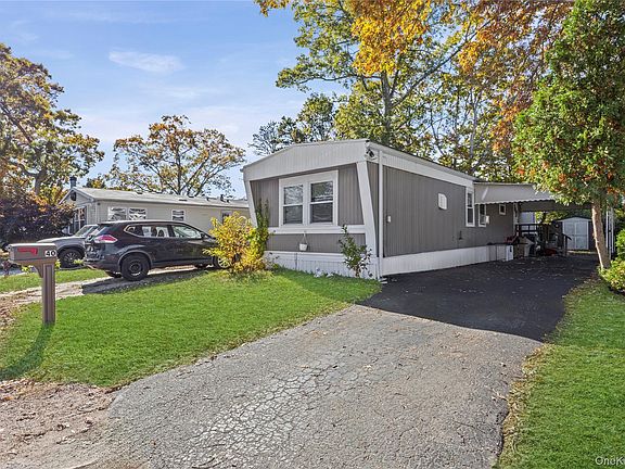 Fully renovated in 2022, this 3 bedroom one bathroom home offers an updated kitchen, luxury vinyl plank flooring, central air, and washer and dryer set in the bathroom. Located in the Bunker Hill Valley Forge Community, just 10 minutes from LIRR Ronkonkoma. The primary sunken bedroom offers ample space to accommodate a king bed and is complimented with a sliding glass door out to the yard, parking is available for up to 4 vehicles including 2 spaces underneath the carport. The sale also includes 2 outdoor storage sheds. Monthly Land lease fees of $1,419 include community grounds maintenance/snow removal on roads, trash, water, sewage. Homeowner responsible for property maintenance.