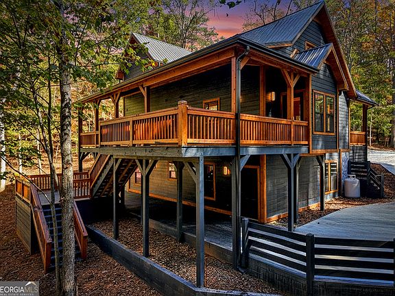 This is the one - where craftsmanship meets mountain tranquility. This brand-new custom home is a true showcase of thoughtful design and quality craftsmanship. From the freshly poured circular driveway and Hardie board siding to the expansive extra-wide decks and a peaceful flowing creek-every detail has been considered for comfort, beauty, and ease of living. Perfectly positioned on a quiet cul-de-sac, this double lot offers exceptional privacy within the sought-after, amenity-filled Coosawattee River Resort. Step inside to discover rich rough-sawn heart pine wall and ceiling accents, a stunning chef's kitchen with an oversized entertaining island, and two inviting fireplaces. Enjoy the convenience of double hot water heaters for always-hot showers, plus a primary suite on both the main and upper levels. The fully finished terrace level provides an additional bedroom and beautifully appointed bath, along with a spacious flex area-ideal for a game room or second living space-complete with its own fireplace and walk-out access to the painted concrete patio and cozy bonfire area. Whether you're seeking harmonious full-time mountain living, a weekend retreat, or an income-producing rental opportunity, this one checks every box. All just minutes from downtown Ellijay, Highway 515, Carters Lake, vineyards, apple orchards, rivers, and endless North Georgia hiking and biking trails.