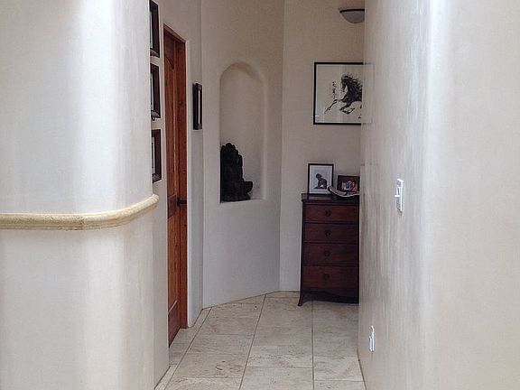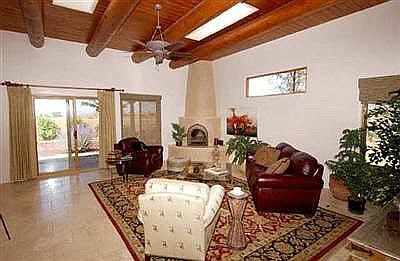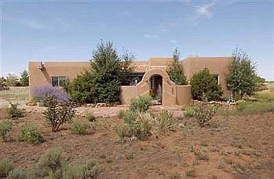 40 Carissa Rd. is a fantastic Eldorado gem. Perfectly located close to entrances, shops and the school, but far from road noise and on an open green belt. Positioned for spectacular Sandia views and optimal passive solar, this 2,160+/- square foot home features luxury interior finishes such as luscious travertine tile, beautiful plaster walls, arches, kiva fireplace, dramatic vegas, solid wood doors and a dream entertaining kitchen. Large master suite with walk-in closet features jetted tub and separate tiled shower. Interior wood shutters make the master bedroom perfect for sleeping in on sunny weekends, and sliding glass door opens onto the back portal and lovely walled garden - a sanctuary for hummingbirds and quail. Tight construction and efficient radiant heat and solar gain make the house cozy in winter but cool in the summer, and the bright, open floor plan makes every inch livable and usable space. With two additional bedrooms and one additional bath on the opposite side as the master the house has privacy without feeling disconnected. On a lovely corner lot with mature landscaping and outside fireplace this is your own private retreat!
