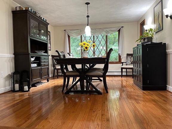 Location! Location! Don't miss the opportunity to see this renovated home in the sought out Greenlodge area featuring 3 bedrooms, 1 1/2 bathrooms, 1 car garage with an addtional storage room. Home is situated on a large private lot with a fenced in yard offering beautiful views of the Blue Hills. This home boasts wonderful new hardwood floors throughout, two cozy fireplaces, renovated bathroom, new marble entry way and much more including new blue stone steps and new stone patio. Lets not forget the new roof from 2015, new garage door 2017 new hot water heater, new boiler installed 2018 and all new appliances. In 2019 insulation was blown into house and the attic was air sealed for saving energy. Close proximity to the highway and a short drive to the MBTA Commuter Rail, Legacy Place and University Station.