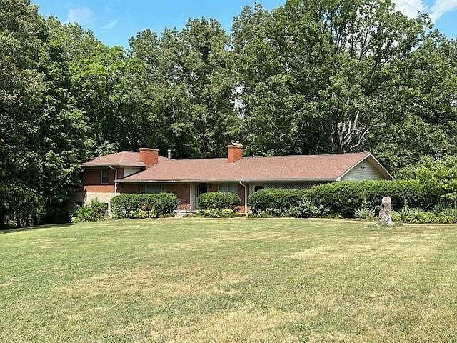 Introducing a sprawling home, conveniently located in town on the corner of 2 streets and sitting on 3.14+/- acres! This split plan features over 3000 sq ft, offering plenty of room for everyone! Hardwood, carpet & tile flooring, a kitchen w/lots of cabinetry, separate dining room w/fireplace, large living room w/fireplace, Family room/Bonus room on the lower level with kitchenette & half bath. Small branch runs along property. New roof 2021, needs some cosmetic interior repair. As-Is sale!