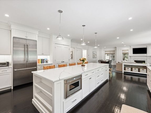 Welcome to this stunning 2019 new construction nestled on a charming dead end street in Wellesley Hills! This beautifully designed home boasts an open concept layout that begins with a show stopping kitchen featuring an oversized island, then an inviting family room with a cozy fireplace, and a gracious dining area perfect for gatherings. The separate office, also with a fireplace, offers privacy and comfort. The layout includes a seamless transition from the large two car garage to a handy mudroom. Retreat to the oversized primary suite, which comes complete with three walk-in closets and a luxurious spa like bathroom with a double vanity. Upstairs, you’ll find three additional spacious bedrooms two sharing a Jack and Jill bath and one with its own en-suite bathroom. The finished lower level is versatile, perfect for a playroom, gym, media room, or whatever suits your lifestyle. Set on approximately 24,000 sq ft, just moments away from Ollie Turner Park, this home truly has it all
