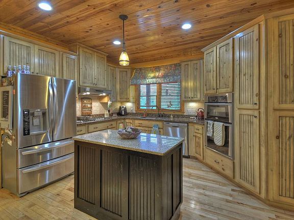 Just what youve been waiting for..Immaculate craftsman 4 or 5 bdrm/3 bath home is situated in upscale paved community short distance from historic downtown Ellijay area, three finished levels are great for families & entertaining with 3/2 on main level, soaring ceilings & massive stone FP, lovely & large loft area, inviting foyer, covered rocking chair porch, finished terrace level with guest quarters and den, potential for additional bedrooms or mother-in-law suite, plentiful storage, outdoor screened party porch w/ woodburning fireplace leads to open deck, gentle landscape w/ concrete drive, plentiful windows to take in view & for bright interior - mix of drywall/wood, custom cabinetry, oversize garage, pristine patio & potting shed, ultimate curb appeal with hard board, stone & shake. exterior, fenced level yard area & location says it all!
