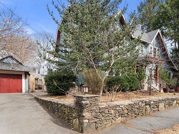 Set in a prime Auburndale location, this charming Transitional Craftsman style residence offers a bright, welcoming floor plan with five bedrooms and three bathrooms. The main level features a lovely eat-in kitchen, a dining room with a beautiful beamed ceiling and built-in china cabinet, and a living room enhanced with a brick wood-burning fireplace and beamed ceiling. Off the living room is a sun-filled family room. The second floor has a spacious landing that leads to a primary bedroom with a bathroom, two additional bedrooms, and another full bathroom. The third level contains two more bedrooms and a bathroom. There is a generously sized patio garden for outdoor enjoyment. A one-car garage is included, for standard or small car. The commuter rail station, Auburndale Center, and both Route 9 and the Massachusetts Turnpike are all close by.