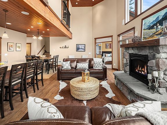 Incredible opportunity to own a mountain home. This home features 6 bedrooms and 4.5 bathrooms. With gorgeous tongue and groove pine ceilings, cherry cabinets, granite kitchen countertops - you will love to entertain! There are heated slate floors, a rain forest shower, and a fabulous covered deck The daylight basement has endless possibilities - rent out the lower level or use it as a guest suite - there is a bedroom and bath and it has its own kitchen, fireplace, and covered deck. The home has an attached garage to park your toys and your vehicle. You are just a short walk or bike ride to skiing, mountain biking, hiking trails and all the outdoor activities the area affords. Don't miss out on this opportunity! Buyer to verify sq. feet.