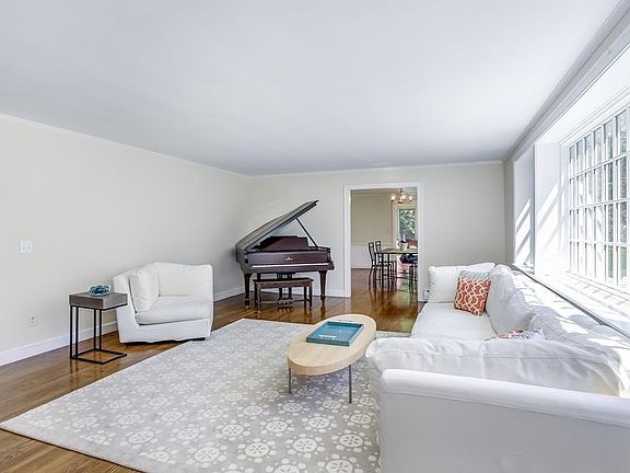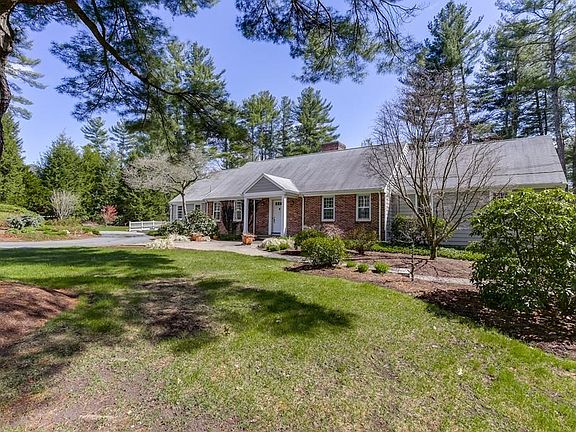 This lovely Cape Cod Ranch has been meticulously maintained and sits on a spectacular 1.67 acre lot with specimen plantings and circular driveway in the heart of the Cherry Brook neighborhood. With app. 3,000 sq. ft of living, this home offers expansion possibilities with a walk up unfinished attic, and a large spacious lower level with room for a shop, exercise room or so much more. The kitchen was renovated with stainless steel appliances, granite countertops, new cabinets, and a pantry for storage and eat-in area or family room. You are welcomed to this home by a beautiful sun-filled living room with fireplace, built-in bookshelves, A dining room with french doors to a vaulted ceiling sunroom with three sides of windows and a tile floor, an ensuite master bedroom, two family bedrooms, a bath and a wood panelled office with built-in book shelves.The above grade lower level has an expansive carpeted playroom with built-ins,and views of the private lush backyard and patio