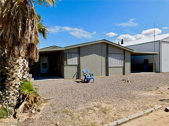 Priced to sell! Take advantage of the opportunity to turn this property into your dream home. Featuring 3 bedrooms, 2 bathrooms, eat in kitchen, dining room with built-in hutch, covered front porch and covered carport. Bring your toys and your airplane. This property has a 2,016 sq. ft. airplane hangar, which includes a workshop with a dog washing station, office/work room and a workshop bathroom. The hangar area features a stainless-steel workbench, shop lights, heater, air compressor, man door leading to the covered parking area and an 11.4 ft. high bi-fold door. There is also side parking for your RV, boat and desert toys. Enjoy the private lifestyle that this property offers and the amazing views of the surrounding mountains and desert landscape. Located in a private airstrip community, within minutes from Cottonwood Cove and nearby Laughlin.