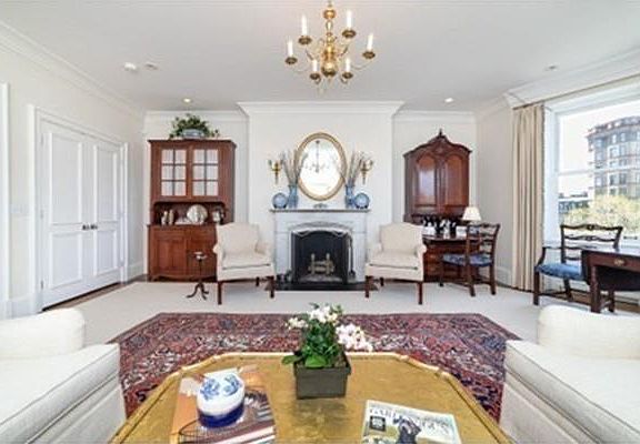 Sought-after first block of Commonwealth Avenue! Stunning renovation of meticulously maintained floor-through residence on the fourth floor offers two bedrooms PLUS custom designed library/home office. Elegant, front-facing as well as exceptionally wide living/dining area features an open floor plan with high ceilings, stately moldings, wood burning fireplace and three (3) oversized bay windows which overlook the Commonwealth Avenue Mall. Gorgeous white kitchen includes counter seating, custom inset cabinets, Carrara marble, Miele oven/cooktop & Liebherr fridge. Sun-filled master bedroom with views of Back Bay skyline offers walk-in closet, custom built-ins as well as handsome en-suite marble bath with step-in shower. Perfect for entertaining, this home features DIRECT ACCESS deeded parking, central AC, washer/dryer as well as private storage in a professionally-managed ELEVATOR building. Enjoy coffee or a glass of wine in the outdoor common patio. A rare opportunity. Don't miss out.