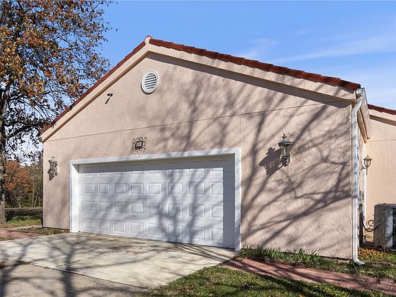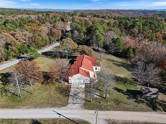 Escape to your own private retreat just minutes from town! This beautifully remodeled 4-bedroom, 2-bath Mediterranean-style home offers 2,143 sq ft of updated living space on 4.12 secluded acres. Renovated top to bottom in 2025, it features soaring ceilings, fresh paint, new flooring, modern lighting, and elegant designer finishes throughout. The stunning kitchen boasts quartz countertops, soft-close cabinetry, and a formal dining area ideal for gatherings. Each bathroom has new vanities with quartz countertops and backlit mirrors. Enjoy an open-concept family room with an electric fireplace or unwind in the luxurious primary suite with a Jetta Jacuzzi tub, rain shower, and huge walk-in closet. The oversized 2-car garage includes a workspace area. A charming 10x14 outbuilding with porch adds versatility for storage, hobbies, or a studio. Move-in ready and perfectly blending country charm with modern luxury—your peaceful escape awaits!