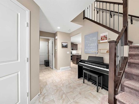 Welcome to this beautifully maintained home in the heart of Cranston, ideally located on a quiet crescent just steps from Fish Creek Park (and, Cranston's Escarpment View Point). The main floor offers an inviting open-concept layout that feels both bright and cozy. The living room features a central fireplace framed by oversized windows, while the kitchen is designed for entertaining with a large island, abundant cabinetry and pantry area, and an adjacent dining area. The fully developed basement expands your living space with a versatile rec/play room, an additional bedroom, and a full bath, with an extra pantry and a large laundry and storage areas, and even a reading nook. Upstairs you’ll find three spacious bedrooms, including the primary retreat with a generous walk-in closet and a bright ensuite featuring an extended vanity and walk-in shower. A huge bonus room with large south-facing windows creates the perfect family gathering and/or office space filled with natural light, next to a hide-away desk area for enjoying some leisure time. Step outside to the stunning landscaped yard, complete with fruit trees and shrubs (pear, plum, cherry, apple, saskatoon and haskap berries, and strawberries), and a charming cedar shed —an ideal spot for hobbies or storage, and take a minute to relax on the composite deck! The oversized garage provides plenty of room for two full sized vehicles and extra storage. This home is perfectly positioned near schools, shopping, and all the amenities of Cranston including the many amenities offered by the HOA), with quick access to Stoney and Deerfoot Trails for effortless commuting. And of course, Fish Creek Park is right at your doorstep—perfect for walking, biking, and connecting with nature.Pride of ownership shines throughout, with only one owner since new. Don’t miss this rare opportunity to own an immaculate family home in one of Calgary’s most sought-after communities!