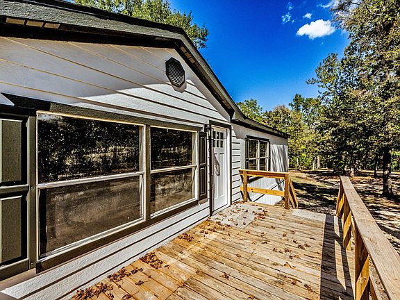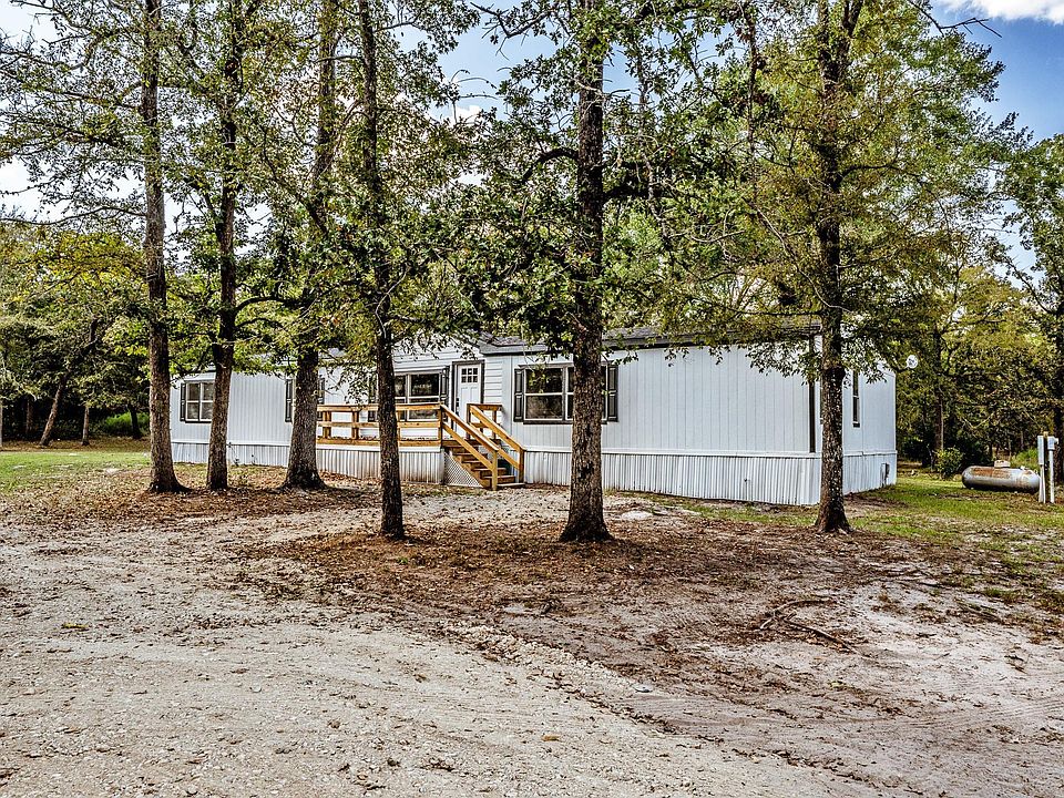 Fully remodeled 4 bedroom, 2 bathroom mobile home on 11.54 peaceful acres in Walker County. Light and bright interior with neutral colors, fresh carpet, and wood-look vinyl flooring for easy upkeep. Spacious split floor plan features a beautiful kitchen with new appliances, tile backsplash, and a window over the sink overlooking the property. Stone-surround fireplace adds warmth and charm, while French doors lead to a serene backyard with views of a tranquil pond. The property is shaded with mature hardwood trees, offering privacy, quiet, and natural beauty. Conveniently located just 10 minutes northeast of Huntsville with easy access to Hwy 19 and I-45. Enjoy the best of East Texas country living with modern updates and room to roam!