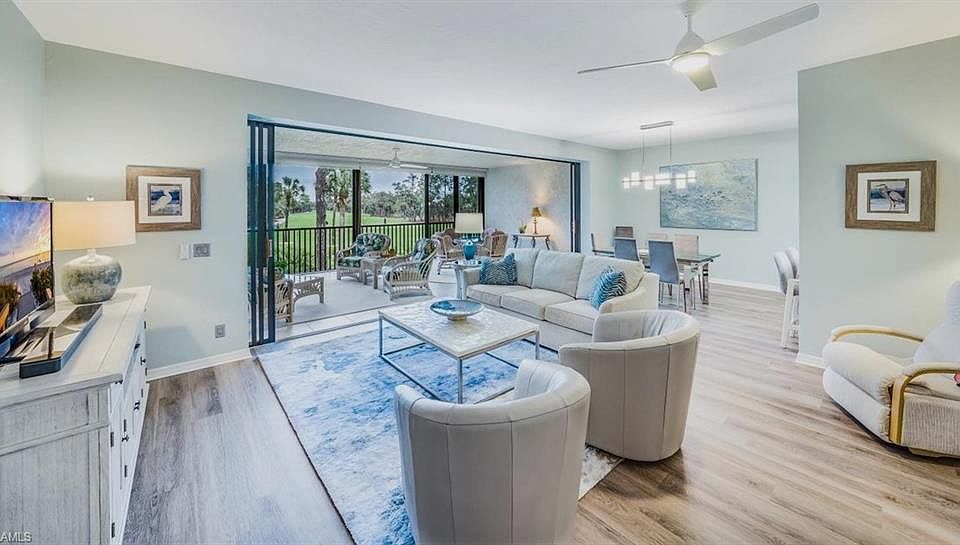 WOW... THIS IS AN AMAZING PRICE.. GRAB IT NOW and LOCK IN THE GOLF MEMBERSHIP AT $105,000 WILL RAISE to $125,000 on June 1, 2025. Beautifully updated & fully move-in ready 2/2 in low-rise condo located in the top rated community of Eagle Creek. Recent upgrades include a new kitchen w KitchenAid appliances, both bathrooms, new flooring & carpeting, new HVAC + hot water tank + washer & dryer, & new furniture in the living & dining areas. Even all 4 ceilings fans are new. And the icing on the cake is the spectacular view over the green & down the length of the 3rd hole. The amazing view can be seen from all areas of the home through the large, glass, impact resistant sliders on the over-sized lanai. The home includes access to a Full Golf Membership, or you have the ability to select a Social Sports Membership. Eagle Creek Golf and Country Club is a friendly GOLF and TENNIS (PICKLEBALL) community nestled on 300 acres of lush landscaping, offers a warm atmosphere with only 458 residences. Conveniently located near shopping, beaches, and top-notch dining on Marco Island and Downtown Naples, (8 MILE DRIVE BOTH WAYS) this property promises a vibrant lifestyle enriched with leisure and entertainment.