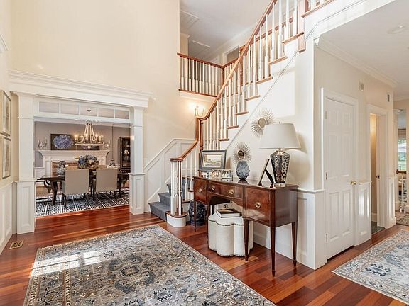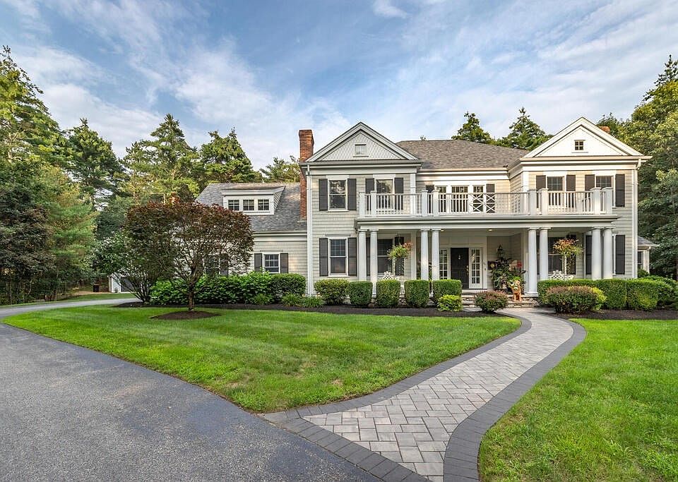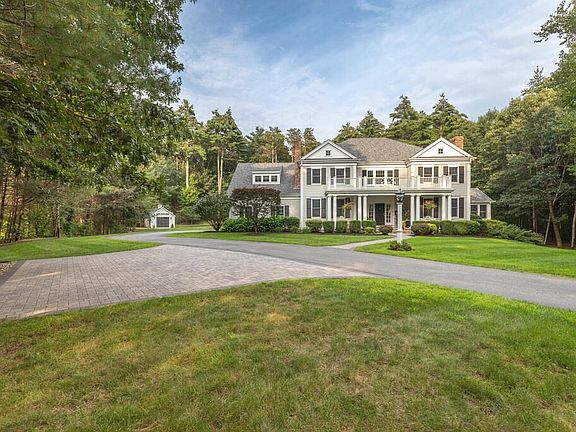 Christmas Tree Farms is the idyllic setting for this exceptional shingle-style 4 bedrm Danforth-Carey built home on two beautiful acres. Distinguished interior transoms and crown moldings, 9 ft. ceilings, Brazilian cherry flooring throughout, 3 fireplaces, Butlers Pantry, 4 1/2 Baths and so much more. Custom Kitchen with Viking and Wolf appliances is open to the Family rm with built-ins and sliders out to the bluestone patio. The very desirable Office with built-ins as well as 4 season Conservatory/Sunroom are also on the main level. Second level includes 4 Bedrms including the primary bedroom with walk-in closet and luxurious Bath-2 addtl Baths and Media Rm/ Bonus complete this level. Basement level features a designated exercise area/gym, 2 bonus rms, 3/4 bath plus great storage closet. A charming Reeds Ferry Shed is conveniently located in the back yard, positioned on concrete flooring with electricity- gas also in place. Open House Sunday Aug 27, 11:30-1:30