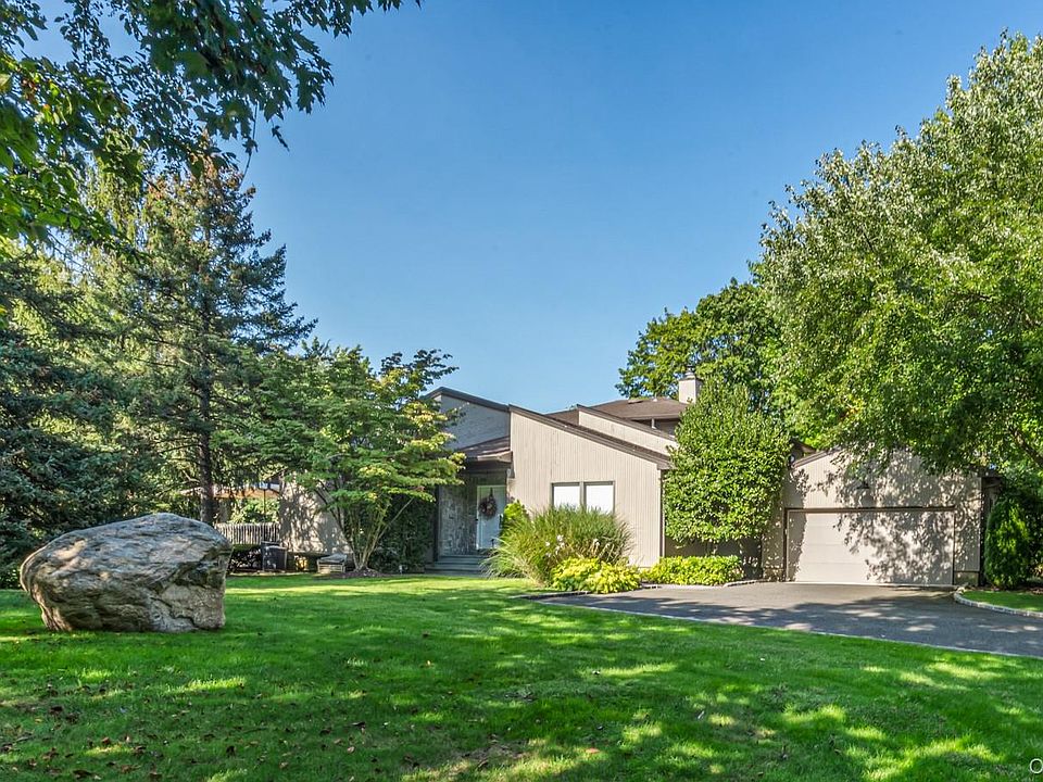 Welcome to this beautiful and tranquil home in the heart of the Gated Community of The Fairways. The home is characterized by hardwood floors, high ceilings, an open floor plan, large rooms and oversized windows that overlook green vistas and flood the interior with natural light. The renovated all white Modern Kitchen, with Stainless Steel appliances and Quartz Countertops opens to a large dining room with storage cabinets: perfect for entertaining! The Living room features a soaring cathedral ceiling and sliding doors to a quiet and peaceful outdoor deck surrounded by green space. Serene First Floor Primary Suite with walk in closet, laundry room, renovated Primary Bath, and access to the deck. For the winter months, there is a comfortable family room with wood burning fireplace and sun catching solarium windows. The second floor features 2 large bedrooms and a bath. The lower level has tons of storage, a recreation/home gym room, and a cedar closet. Attached 2 car garage with interior access, central vacuum. Enjoy community pool, tennis, pickle ball and basketball courts, and 24/7 security. Herricks School District.
