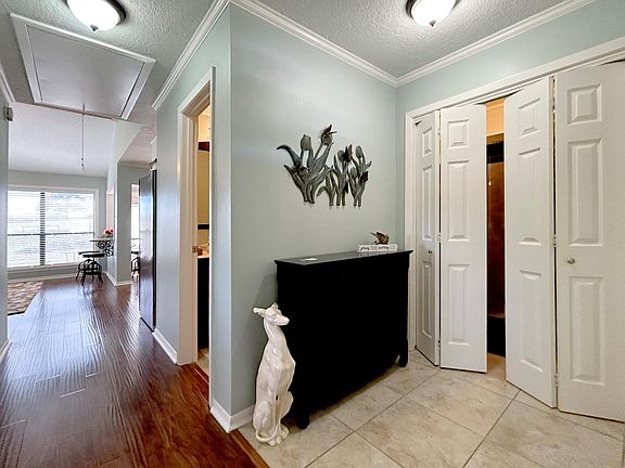 Wall of windowsRoomy closetFreshly painted interiorsUpdated bathroom vanityOnsite golf cart garagePeek-a-boo breakfast bar