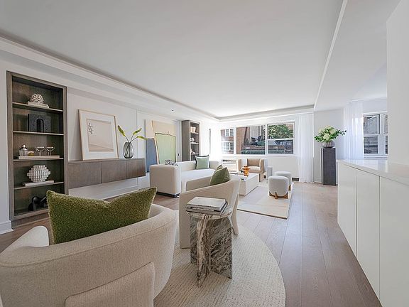 Located in one of the Upper East Side's most desirable full-service condominiums, one block from Central Park, residence 6F at 40 East 78th Street is a beautifully designed two-bedroom, two-bathroom home offering refined proportions, modern conveniences, and sun-filled rooms with west-facing exposures overlooking Madison Avenue. A stunning Silverstone Marble entry foyer introduces the home and flows naturally into a spacious living and dining area, perfectly suited for both entertaining and comfortable everyday living. Oversized windows frame open views and bathe the space in natural light throughout the day. The open chef's kitchen, designed by the acclaimed Pavarini Design, balances elegance and function. Appointed with quartz countertops, sleek custom cabinetry, and appliances by Bluestar, Thermador, and Bosch the kitchen is as stylish as it is efficient. Sleek custom cabinetry, thoughtful storage including a very large pantry, and sophisticated finishes make it a centerpiece of the home. The primary suite is serene and spacious, featuring abundant closet space, including a grand walk-in, custom cabinetry, and a luxurious ensuite designer Carrara marble bathroom, designer vanity, and marble walk-in shower. The second bedroom is equally spacious and offers versatility as a full-sized bedroom, home office, or den. The gorgeous second bathroom is complete with Silverstone Marble, a shower/tub combo, and custom vanity. Additional highlights include wide-plank (7") Mythic European oak flooring, Lutron lighting with timers, bespoke built-ins throughout, thru-wall AC, and a classically design aesthetic that reflects the work of one of New York's most distinguished interior designers. A rarity off Madison Avenue, The Charles House Condominium was built in 1956 and is one of the only full-service condominiums near Central Park. Standing 17 stories and 102 units, the building offers every convenience: 24-hour doorman and concierge, live-in superintendent, fitness center, bike room, laundry facilities, and an on-site garage with parking. Perfectly positioned near Central Park, world-class restaurants, designer boutiques, cultural landmarks, Museums, and the best of what the Upper Eastside has to offer, this unique home presents a rare opportunity to live in an exquisite home infused with designer quality and timeless sophistication.
