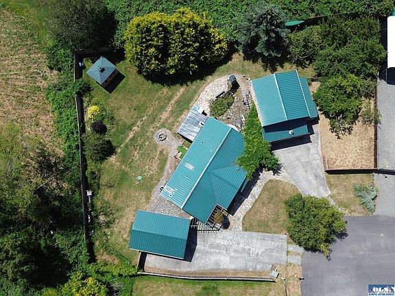 This is a whimsical property on two lots with custom woodwork & stained glass accents throughout. Manufactured home has 1406 sq ft with two bedrooms - each with its own en-suite. Updated cabinets in the kitchen with breakfast bar, wood-paneled ceilings in the living room & kitchen make the space cozy & inviting, sunroom off the back with beautiful stained glass windows. Separate garage has 416 sq ft with office space. Detached shop has 832 sq ft on the ground floor & 576 sq ft on the 2nd floor.
