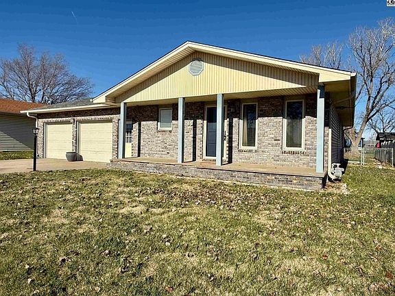 Discover comfortable living in this 3 bedroom, 2 bath home conveniently located in South Hutchinson. The main floor features a bright and functional layout, including a dedicated laundry room for added convenience. Enjoy extra space with a large recreational room and a versatile bonus room in the basement, perfect for a home office, gym, or additional living area. The exterior offers low-maintenance vinyl and brick siding, a welcoming covered front porch, and a covered back patio ideal for relaxing or entertaining. The fully fenced yard provides privacy and includes a handy storage shed for tools and outdoor gear. A great property with plenty of space, charm, and practicality - ready for its next owner to enjoy!