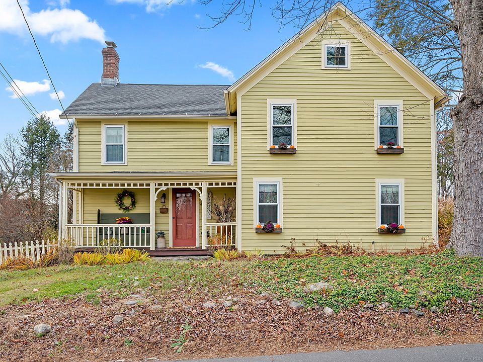 So you love the "Farm House" style? No compromise here! Circa 1840 beauty exudes charm throughout. Artist owned, the home features functional antique pieces combined with all the modern comforts you desire. New kitchen, leathered granite counters, lighting fixtures and appliances; even a walk in pantry! Every room is warm and inviting. Formal and informal dining areas, beehive fire-placed living room utilizes built in wood burning insert. Custom accents include areas of exposed wood, antique Staffordshire wash basin, copper sink & Amish wood shelves. French doors lead to library/den with built-ins and a Rumford fireplace; possible use as 4th bedroom. Two full baths, one on each floor & artistically fashioned, compliment the three main bedrooms. This romantic homestead is set on a level corner lot and bordered by a tapestry of perennial flower beds. Lilacs, lavender, hydrangea, and a gated white picket fence surround the lovely yard; something is always in bloom! Ideal for entertaining, recreation or simple relaxation. Two car barn/garage with loft has its own updated electrical. Enjoy evenings around a fire-pit or in the spacious enclosed screened porch. This unique property is served by public water and sewer. The location is superb... walk to schools, town pool/tennis, walking trails and minutes to Collinsville center, restaurants, and river recreation including kayaking/fishing and more. Two hours to NYC or Boston.