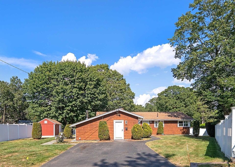 Move-in ready, quintessential 'L' style ranch in lovely neighborhood. Enjoy the convenience of one-floor living! Walk into a large living room that opens into a tastefully updated, open concept kitchen with granite countertops, off-white cabinets, backsplash, and stainless steel appliances. Dining room flows seamlessly into back family room that is spacious, yet feels cozy with a wood burning fireplace and large windows overlooking the backyard. Pergo floors throughout the majority of house are durable and stylish. Mini splits were added several years ago and can be used both for cooling and to supplement heating system. Roof roughly 14 years old and Western Red Cedar shingled siding roughly 12 years old. The yard is partially fenced in and features a back patio perfect for lounging or barbeques. Just minutes to shopping, highway, commuter rail, Framingham State, Keefe Tech and much more!