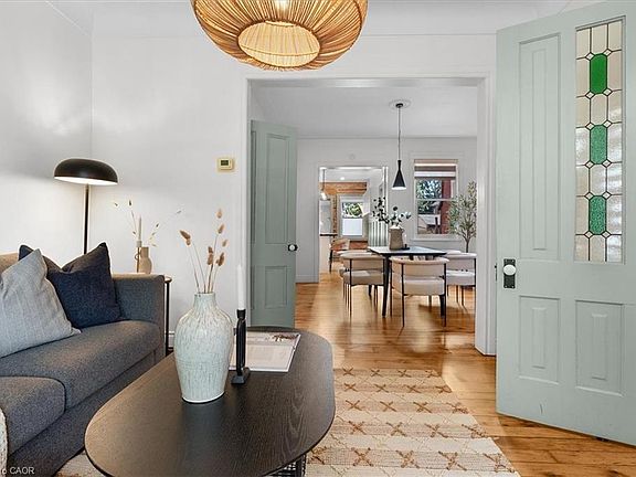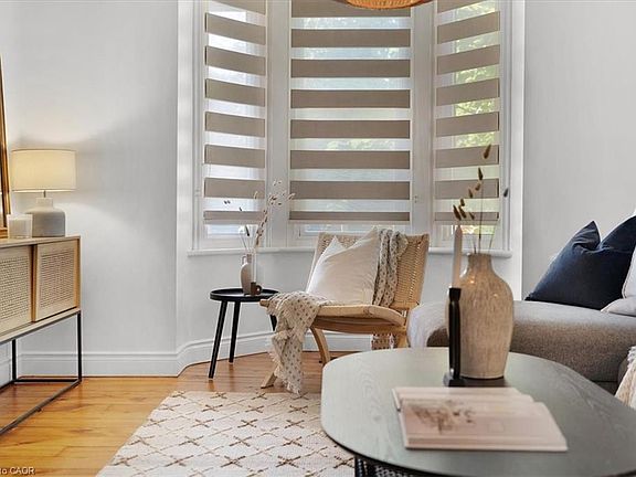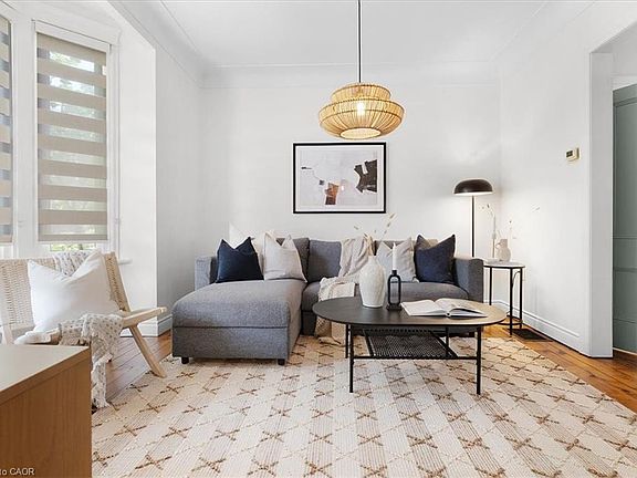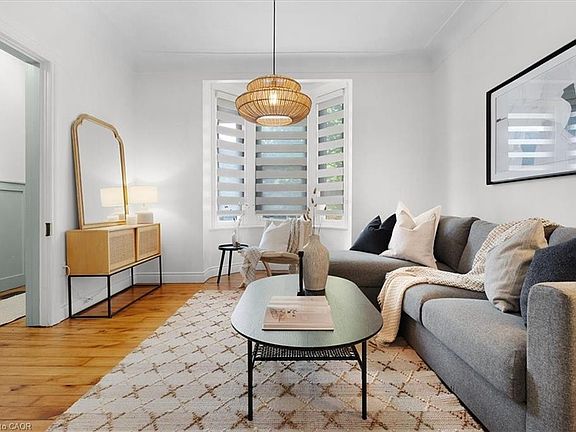 From the moment you step through the front door of 40 Emerald Street North, you’re greeted by timeless elegance and modern comfort in perfect harmony. The spacious foyer welcomes you with a full closet, solid wood Victorian doors adorned with vintage hardware, and recently refinished original pine floors that flow throughout the home. High ceilings crowned with ornate medallions, lofty baseboards, and exposed brick create a warm, historic backdrop. The kitchen is a showpiece. Bright white cabinetry, stainless steel appliances, polished wood island, farmer’s sink, herringbone backsplash, wainscoting, and a striking exposed brick wall blend beautifully with the home’s century-old soul. Spacious principal rooms and tall windows fill the main level with light. Convenient powder room finishes the main floor. Wood stairs lead you up to three bedrooms, each with original doors, trim, hardware, and floors, along with a modern, sparkling bath. Everywhere you look, the best of old-world craftsmanship and thoughtful updates unite in style. The fully finished basement offers incredible flexibility. A private in-law suite, teenage retreat, or guest space featuring a living area that can double as a bedroom, a sleek 3-piece bath, kitchenette, and direct laundry access. Step outside to a fully fenced backyard, perfect for relaxing or entertaining, and a rare detached garage for parking or storage. Updates incl. all wiring and plumbing (2019), 50 year shingles on main roof (2020), all new windows and limestone sills (2019), furnace (2019), water heater (2020). All of this in a walkable downtown location, just steps to shops, restaurants, parks, and transit. 40 Emerald Street North delivers heritage charm, modern updates, and unbeatable convenience. It’s a real gem in the heart of the city.