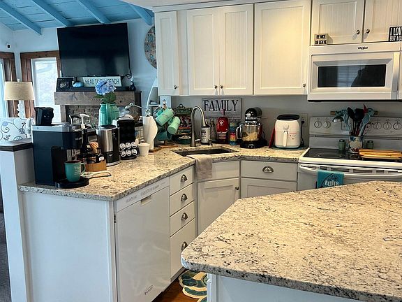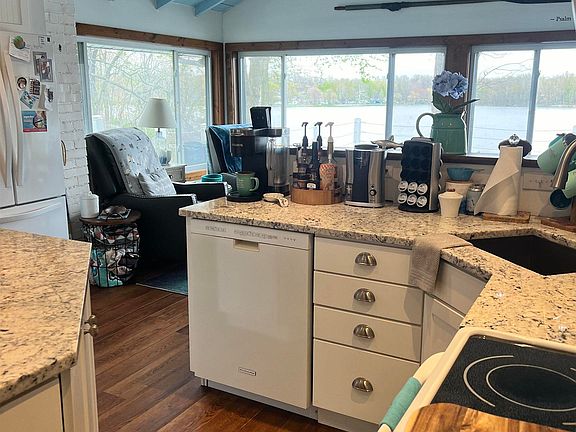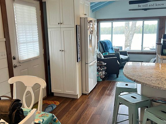 This year round lake front home is being sold turnkey, all furniture to remain. Views, views and more views. 2 levels of decking to watch the world go by. Open concept, newly renovated home. Large loft area that sleeps 3, New HVAC system installed within the last 5 years. When you walk into this home all you see is the lake and the beautifully designed floor plan. This home has 2 bedrooms and 1.5 baths, a bunk room, and a large eat in kitchen. Pier is included.