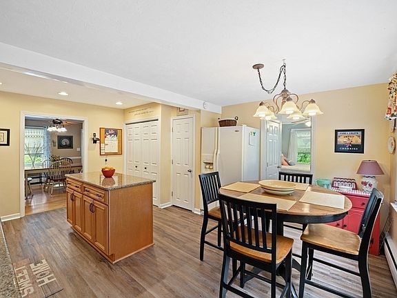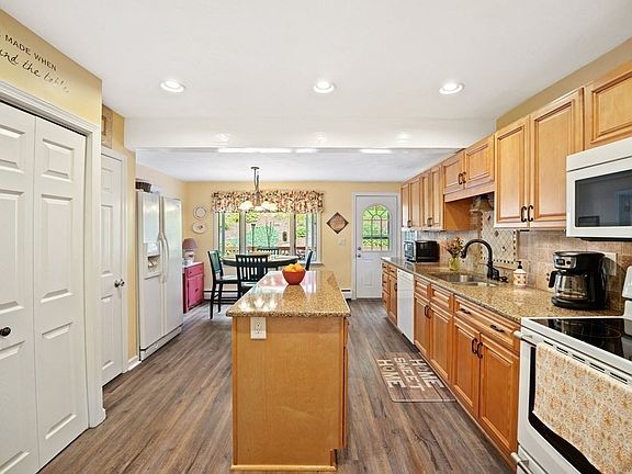 Multiple offers Highest and Best DUE AUG 28 5pm!Updated eat-in kitchen with beautiful quartz counters, under cabinet lighting, island for even more counter and cabinet space, and a large pantry. Lots of light coming in from the picture sized window. Hardwoods in the living and dining rooms. Off the living room you will find a cozy sun room with cathedral ceiling, ceiling fan and plenty of space to relax. The three bedrooms are good size and all have closets, ceiling fans, and wall to wall carpeting (but there are hardwoods under) . Head out the back door to your oversized deck that spans the entire house. You can look out to well manicured garden space with flowers and plants. There is a fire pit area and plenty of space to entertain. The basement is unfinished to give you plenty of space for storage and 2 car garage under. Perks include - Roof is approximately 10 years old (30 year roof), boiler, oil tank, hot water heater are 2 years old, generator plug. Close to major routes
