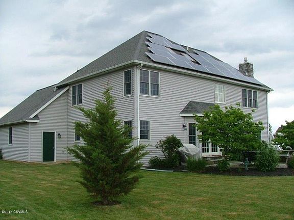 POWERED BY THE SUN: This beautiful Shipton custom built home located in the popular Brookpark Farm, Lewisburg is a must see. Powered by 20 solar panels (total 2015 electric cost to date of just $118.61) & natural gas hot air & water equals amazing energy savings. Large well-manicured lot with southern exposure is adjacent to the Union County Library, shops, restaurants, and many other amenities. Open floor plan in immaculate condition with many updates. New granite kitchen counter & island tops, gas fireplace, hardwood floors, two sky lights, all appliances, & a jetted tub in master bath. Full finished basement will Not disappoint. Newer gas water heater, added water softener, plenty of storage & more. Mifflinburg schools & taxes. 10G Property