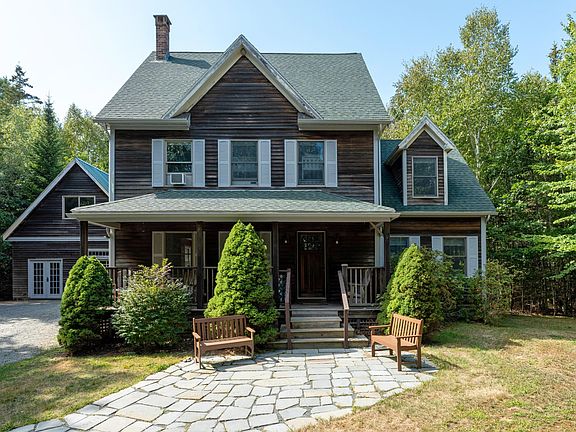 Beautiful custom-built home in a quiet Bar Harbor neighborhood. Tucked within a lovely, wooded lot, this property offers total privacy. The charming, 2200 sq. ft. turn-key home is centrally located in the Town Hill Village of Bar Harbor. The first floor is comprised of formal living and dining rooms, a large eat-in kitchen connected to a spacious family room, ample mudroom with built-ins, and a powder room. All 4 bedrooms and 2 full baths are located on the second floor with the large master suite offering a full bathroom with a separate shower and tub, walk-in closet, and vaulted ceilings. Gorgeous woodwork throughout. The covered front porch and large exterior deck allow for easy access to the level yard and are great for entertaining. Wired internet connections are located throughout the home. A full, unfinished basement has both interior and exterior access. Stately 1-car garage with a separate, spacious workshop and an unfinished second story is full of potential and ready for your creative projects.