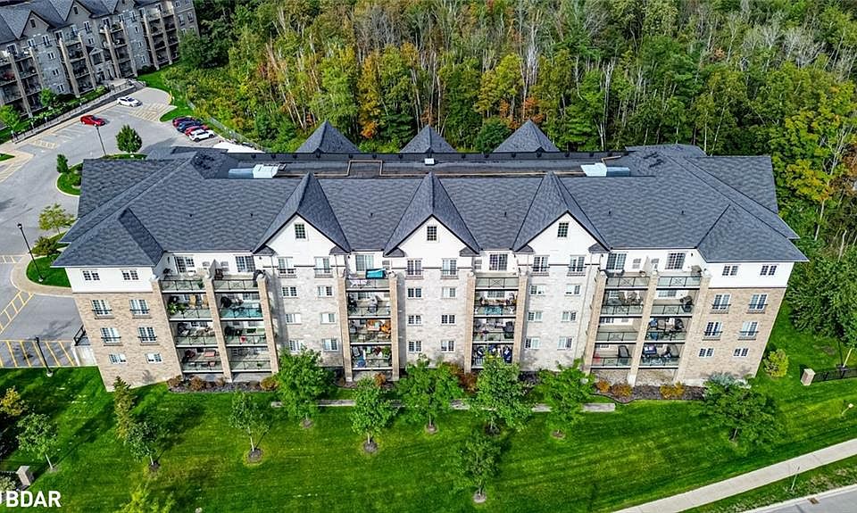 RARE TOP-FLOOR CORNER PENTHOUSE OFFERING SUN-FILLED LIVING, MODERN COMFORTS, & NATURE AT YOUR DOORSTEP IN DESIRABLE ARDAGH! Welcome to this top-floor corner penthouse in the desirable Ardagh neighbourhood, celebrated for its peaceful atmosphere and everyday convenience. Just steps to public transit, schools, the YMCA, parks, and dining, and only minutes to downtown Barrie, you’ll love being close to shopping, entertainment, Centennial Beach, shoreline trails, waterfront parks, and the Allandale GO Station for an easy commute. Set across from Bear Creek Eco Park and backed by forest, this home offers a serene natural backdrop. Inside, oversized windows fill the open-concept living and dining areas with light, while the adjoining kitchen keeps you connected to the heart of the home. Step out to your private balcony and enjoy the fresh air, or retreat to the spacious primary suite with its walk-in closet and 4-piece ensuite. Two additional bedrooms and a 3-piece bath add space for family, roommates, guests, or a home office. Everyday living is made simple with in-suite laundry, a secure underground parking space, and a dedicated storage locker. Building amenities such as a party room, playground, visitor parking, and inviting outdoor spaces for relaxation and gatherings add to the appeal of this exceptional home. Penthouse living with everyday convenience and nature at your doorstep - this #HomeToStay is ready to impress!